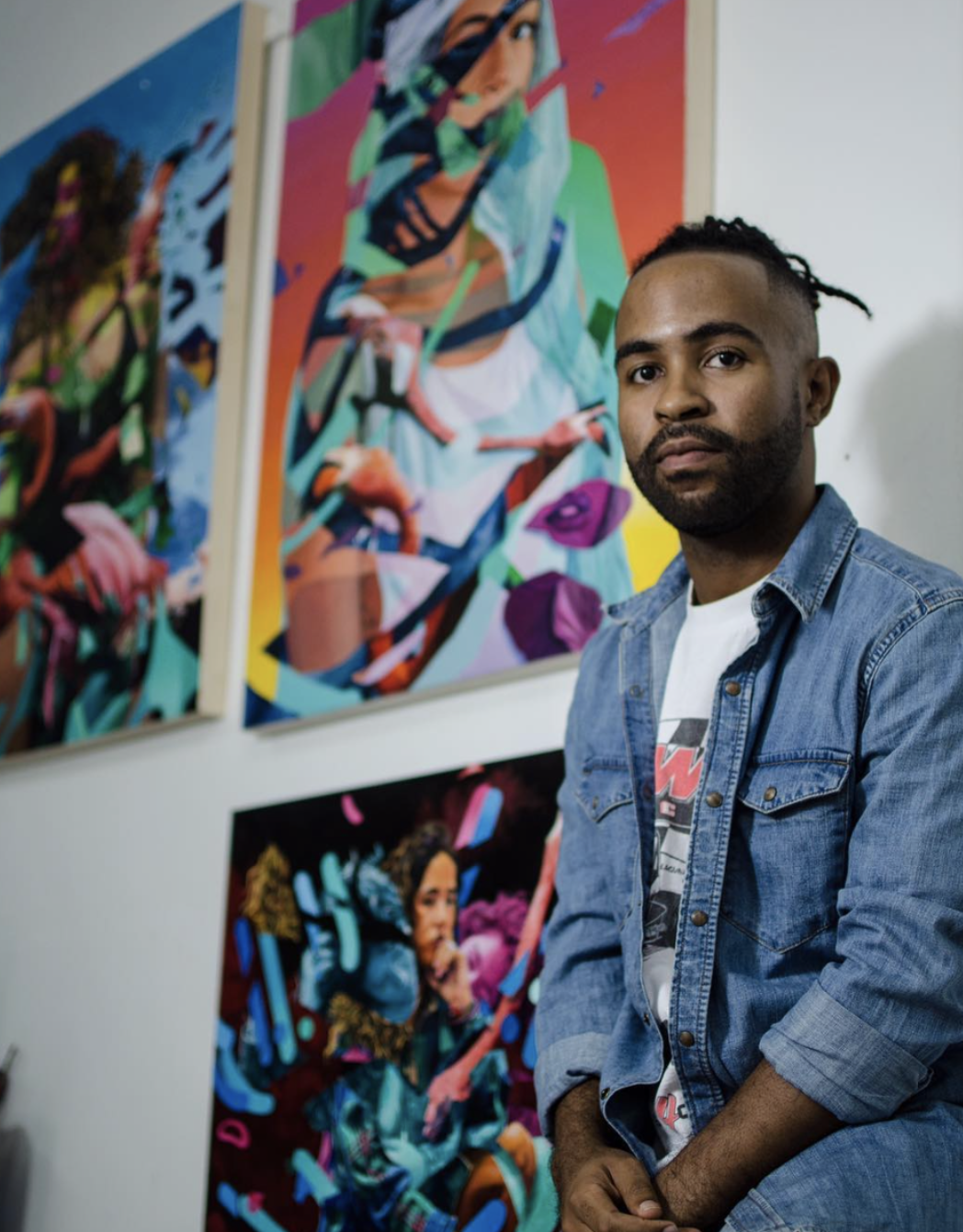 Mwanel Pierre-Louis is an Artist based out of Miami, FL. His work combines realism and abstraction in a narrative that draws from personal interactions and pop references. Mwanel's paintings feature juxtapositions of fragmented experiences and a strong emphasis on the relationship between subject and color. Born in NY, from Haitian descent, he's spent time living and absorbing the culture from New York, Miami and Los Angeles. Pierre-Louis attended New World School of the Arts' high school program in Miami, Florida and Art Center College of Design's illustration program in Pasadena, California. His clients include Starbucks, Fader Magazine, Adidas and Atlantic Records. Mwanel's work has been exhibited in Scope Art Fair during Art Basel, Miami and Switzerland, as well New York City. He’s been apart of the 5th annual POW!WOW! Hawaii's "Exploring the New Contemporary Movement" in the Honolulu Museum of Art. 2019, Mwanel had his first solo show with Thinkspace Gallery in Los Angeles and continues to have more shows with galleries as Talon, Antler,Spoke Art and Nucleus Galleries.